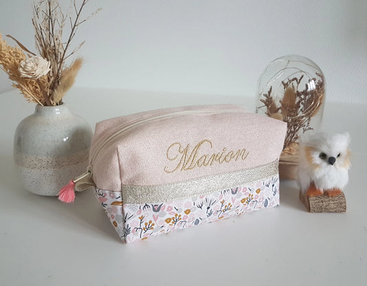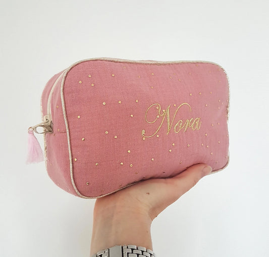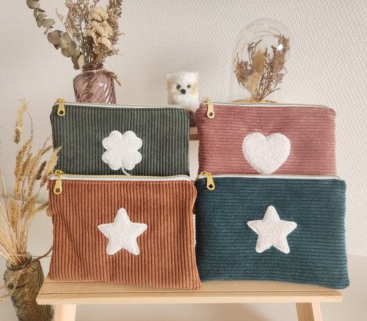 EN STOCK : Trousse de toilette en velours ou coton brodée tête de chat