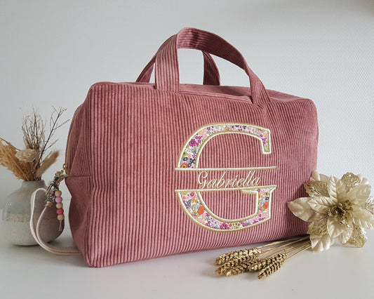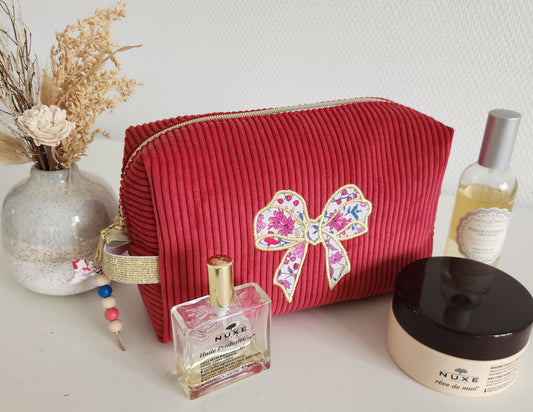 EN STOCK : Trousse de toilette noeud en velours côtelé fushia