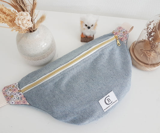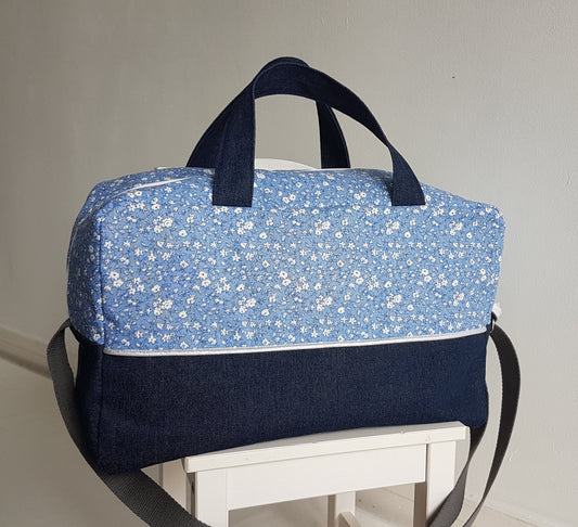 Sac à langer ou de voyage, liberty bleu et jean denim