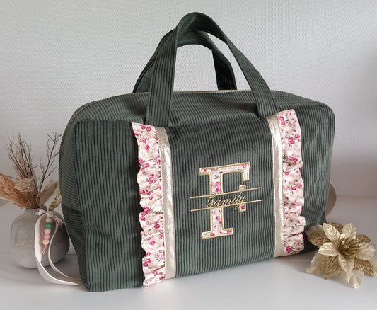 Sac à langer ou de voyage, rose pâle scintillant et liberty rose