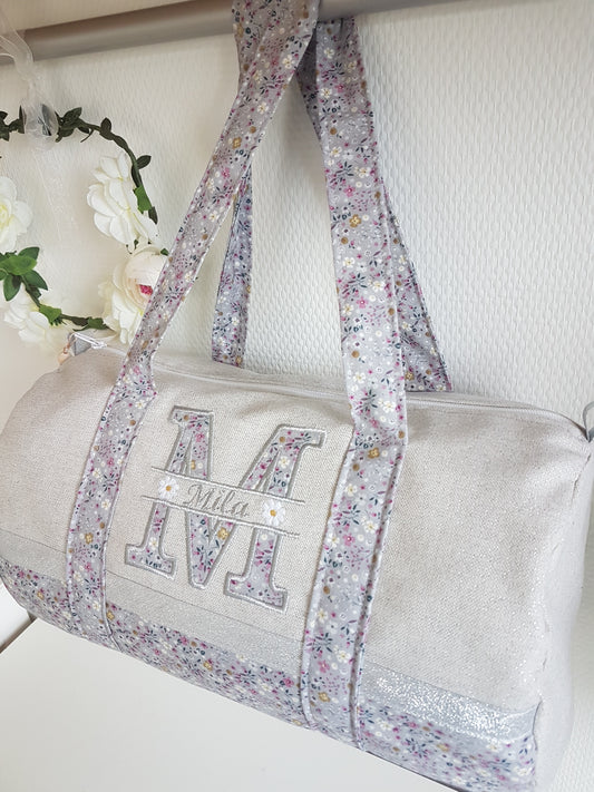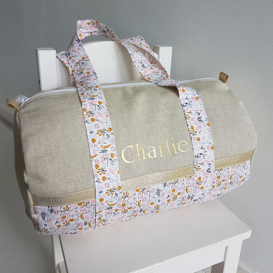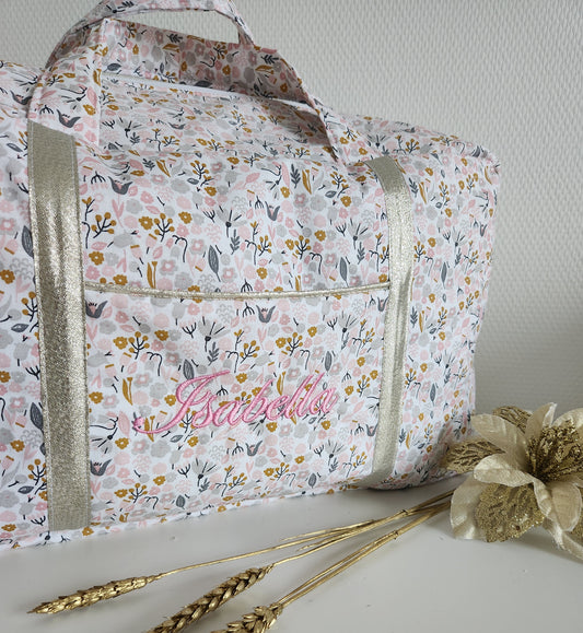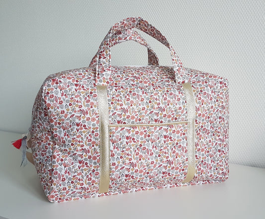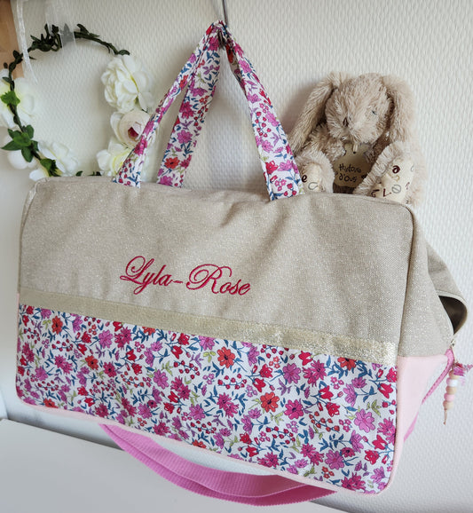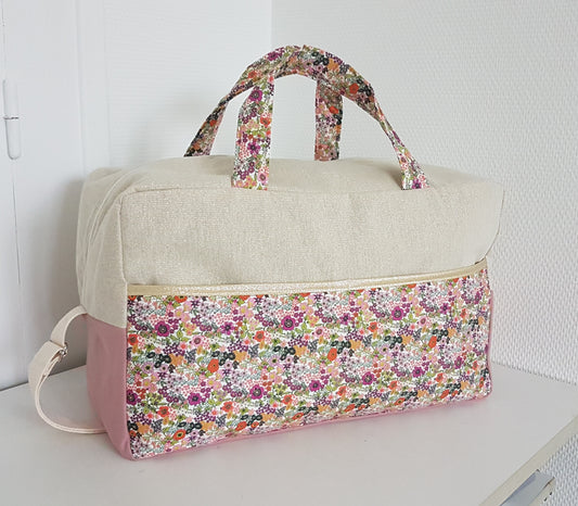 Sac à langer ou de voyage, beige scintillant et liberty rose