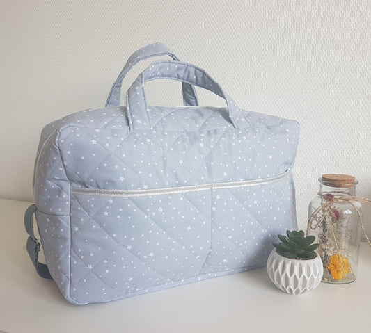 Sac à langer ou de voyage, coton matelassé gris étoiles blanches