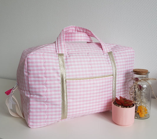 Sac à langer ou de voyage, coton vichy rose pâle.
