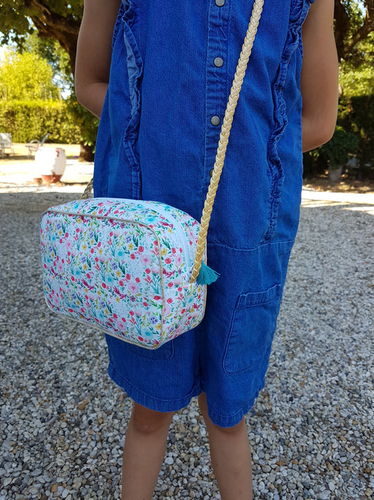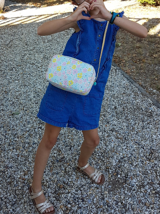 Sac à main petite fille bandoulière en coton fleuri pastel style liberty