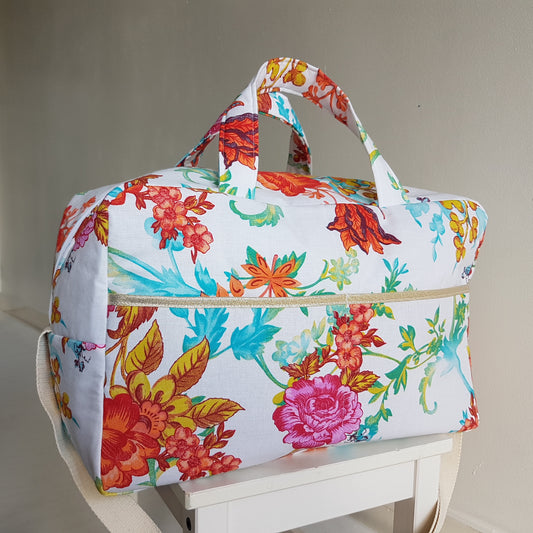 Sac à langer ou de voyage, grosses fleurs multicolores.