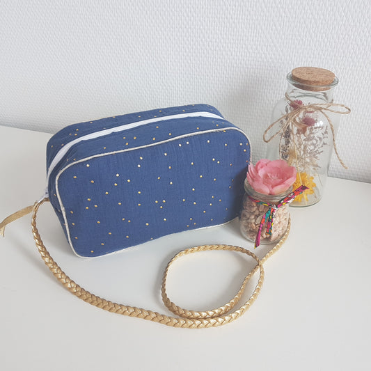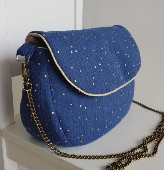Sac à main bandoulière femme, double gaze de coton à pois dorés