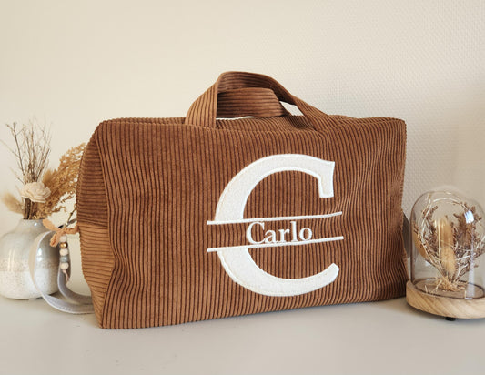 Sac à langer ou de voyage, coton fleuri molletonné bordeaux