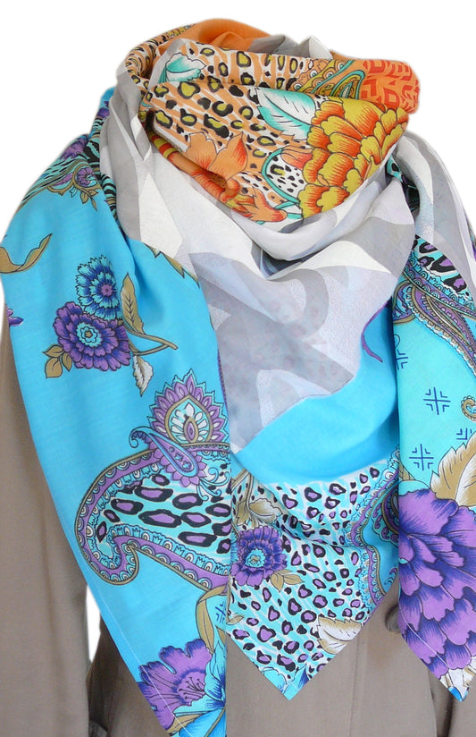 Großer quadratischer Schal für Damen, Patchwork, Übergröße, aus Baumwoll-Voile