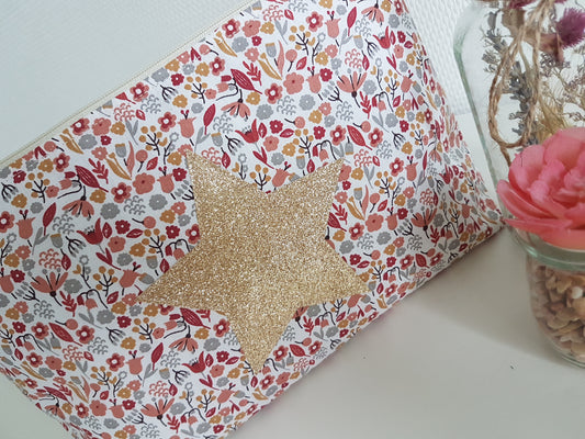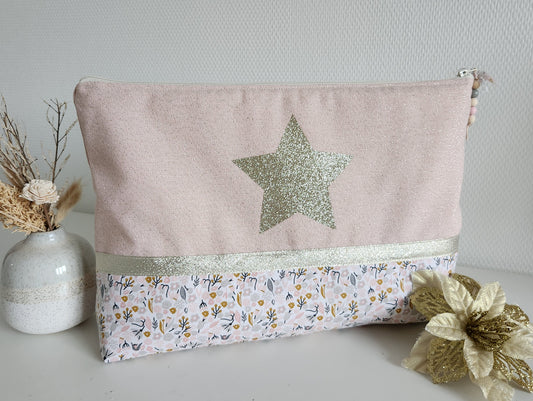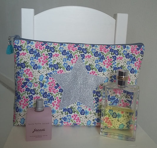 Großes rosa-blaues Etui/Beutel aus Liberty-Baumwolle, silberner Stern