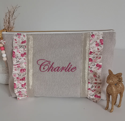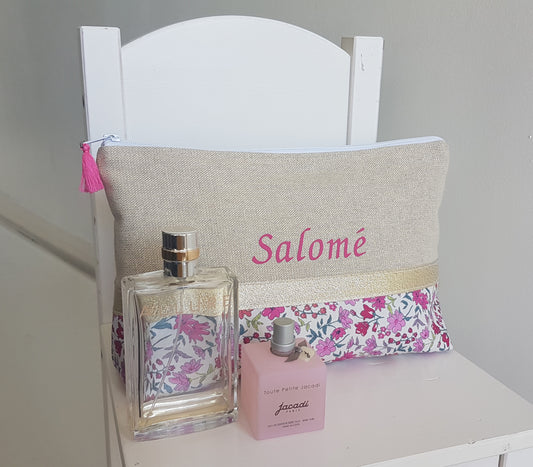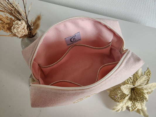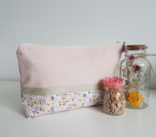 Großes, schimmerndes Etui/Beutel in Beige und Liberty in Rosa