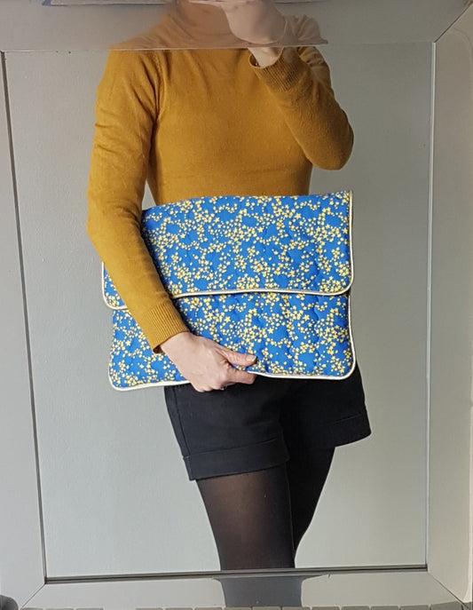 Königsblaue Computertasche aus Baumwolle mit Klappe und gelben Sternen