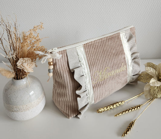 Großes Etui / Federmäppchen mit Glitzer in Beige und beigefarbenem Cord