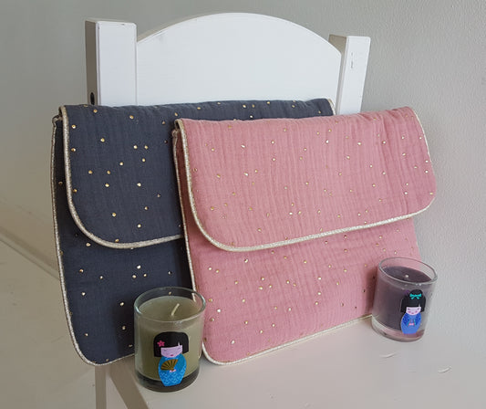 Beutel für Haarspangen und Haaraccessoires, doppelte Baumwollgaze mit goldenen Punkten