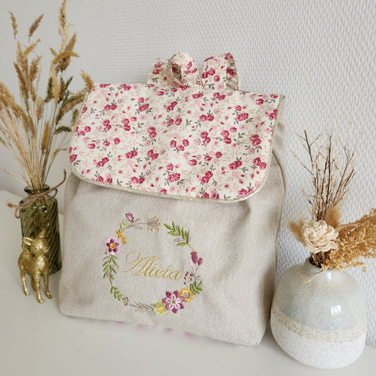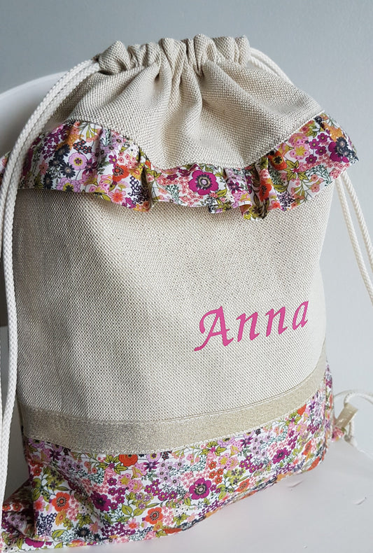 Bestickter Kindergartenrucksack, schimmernde Baumwolle und Liberty