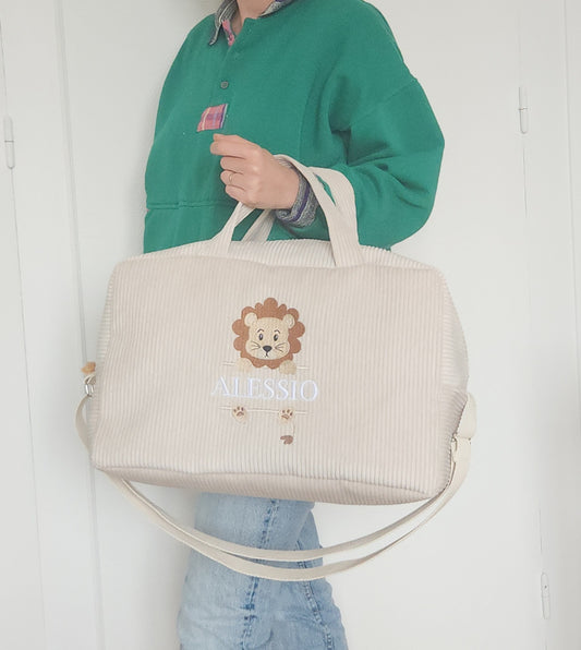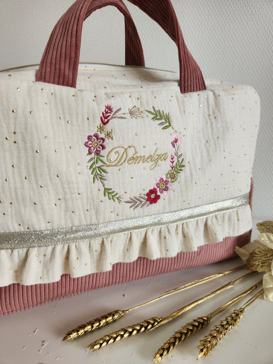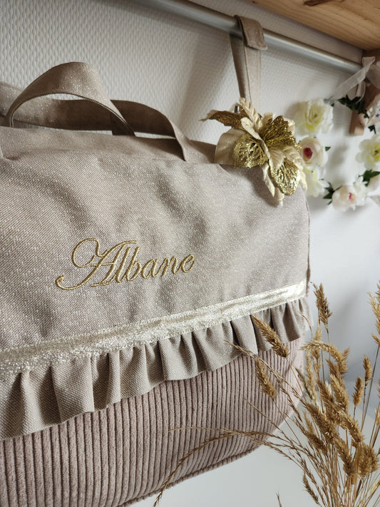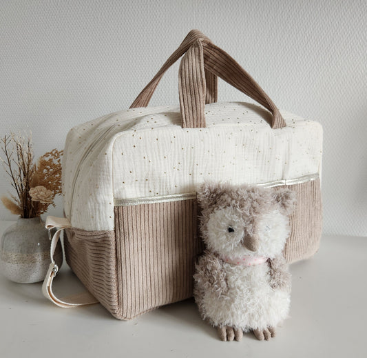 Beige glitzernde Wickel- oder Reisetasche aus Baumwolle und Cord