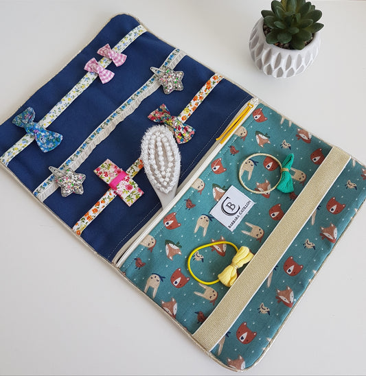 Beutel für Haarspangen und Haarschmuck, grüne Baumwolle mit Animalprint