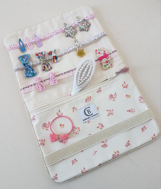Beutel für Haarspangen und Haarschmuck, Baumwolle mit pastellfarbenen Blumen, Liberty-Stil