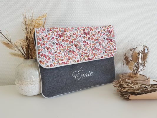 Krankenaktenhülle, Wickeltasche, grau und rot liberty