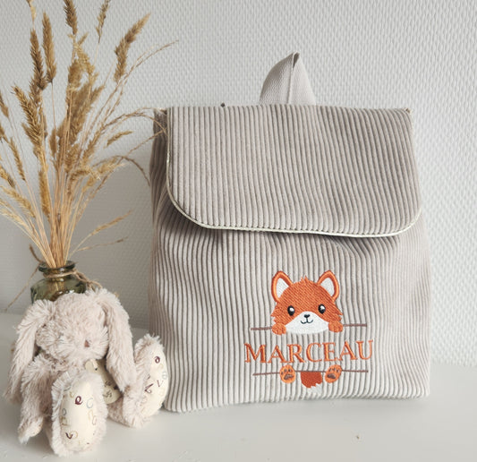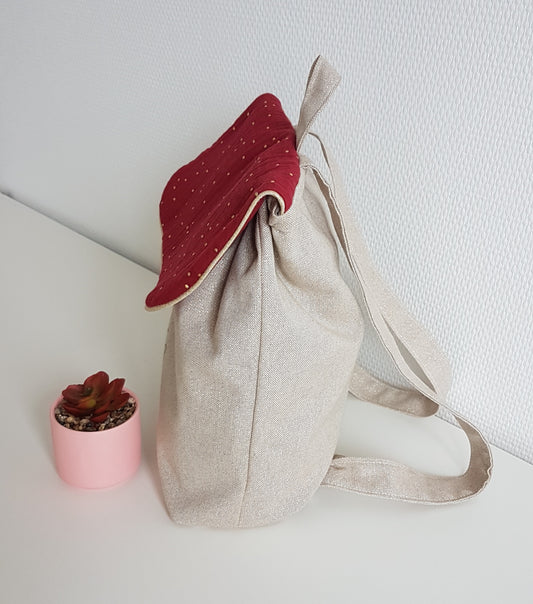 Kindergartenrucksack aus Baumwolle und doppelter Baumwollgaze in Beige