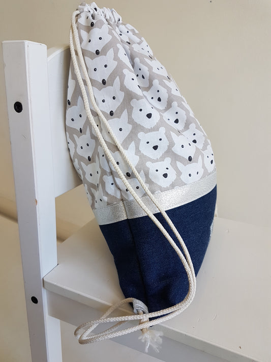 Kinderrucksack mit Tiermustern in Denim und Beige