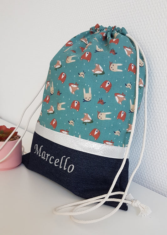 Kinderrucksack mit Jeans- und grünem Tiermuster