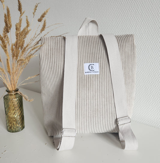 Kindergartenrucksack aus Baumwolle und doppelter Baumwollgaze in Beige