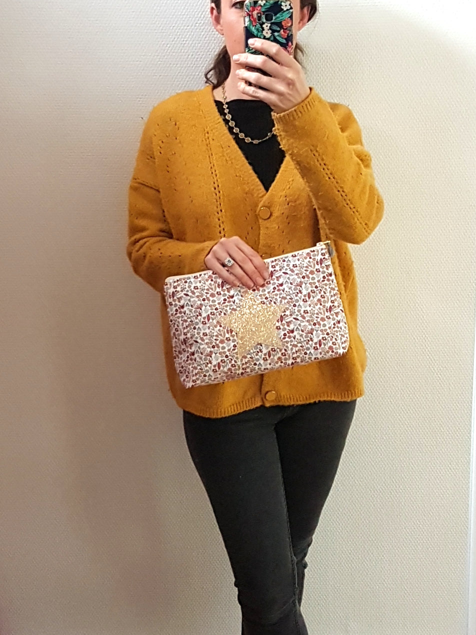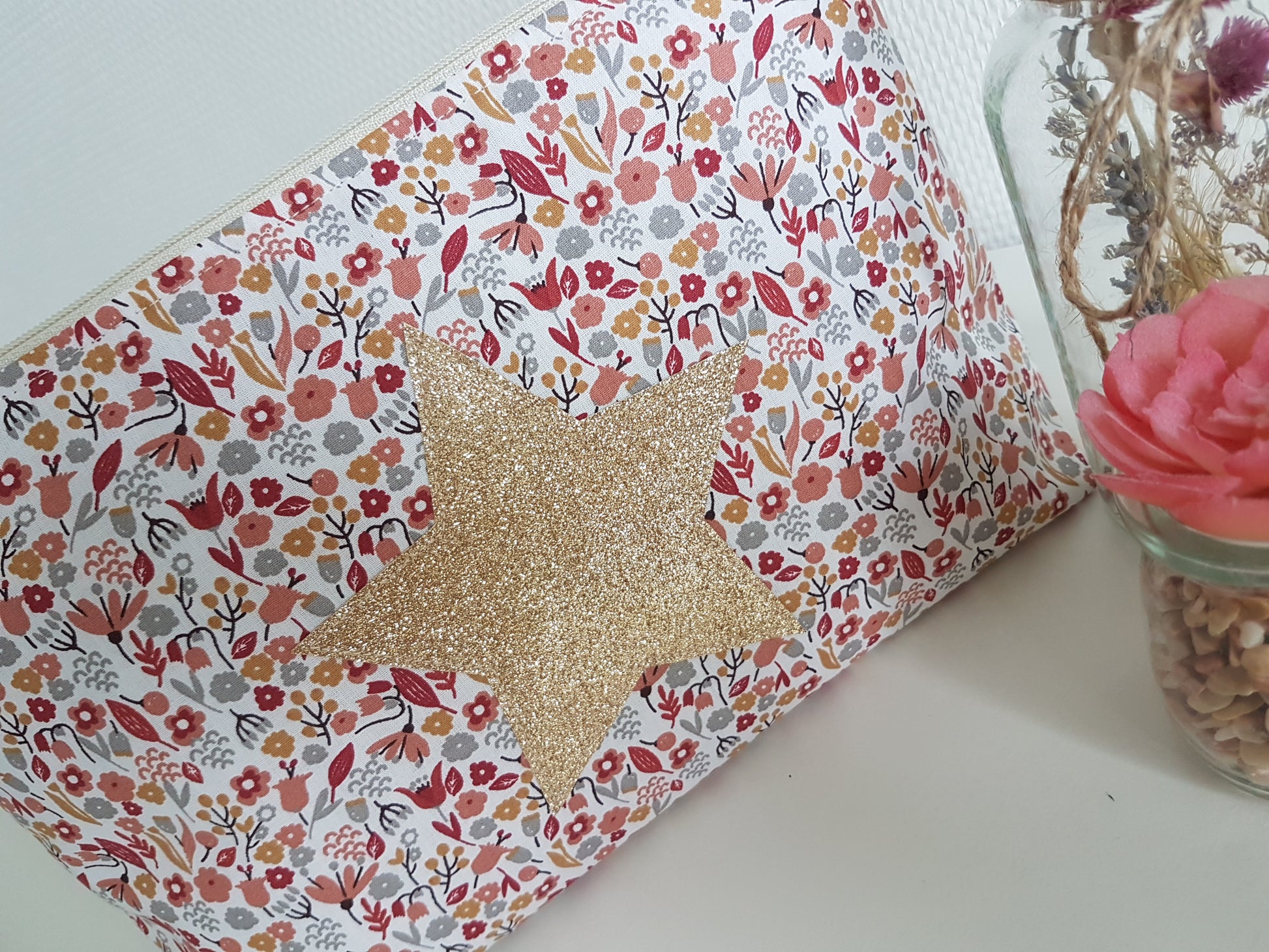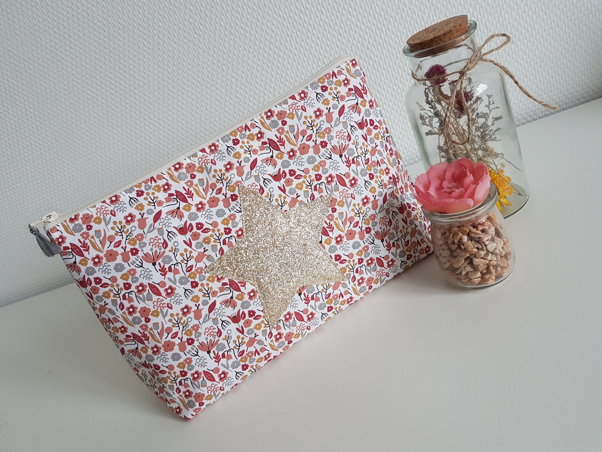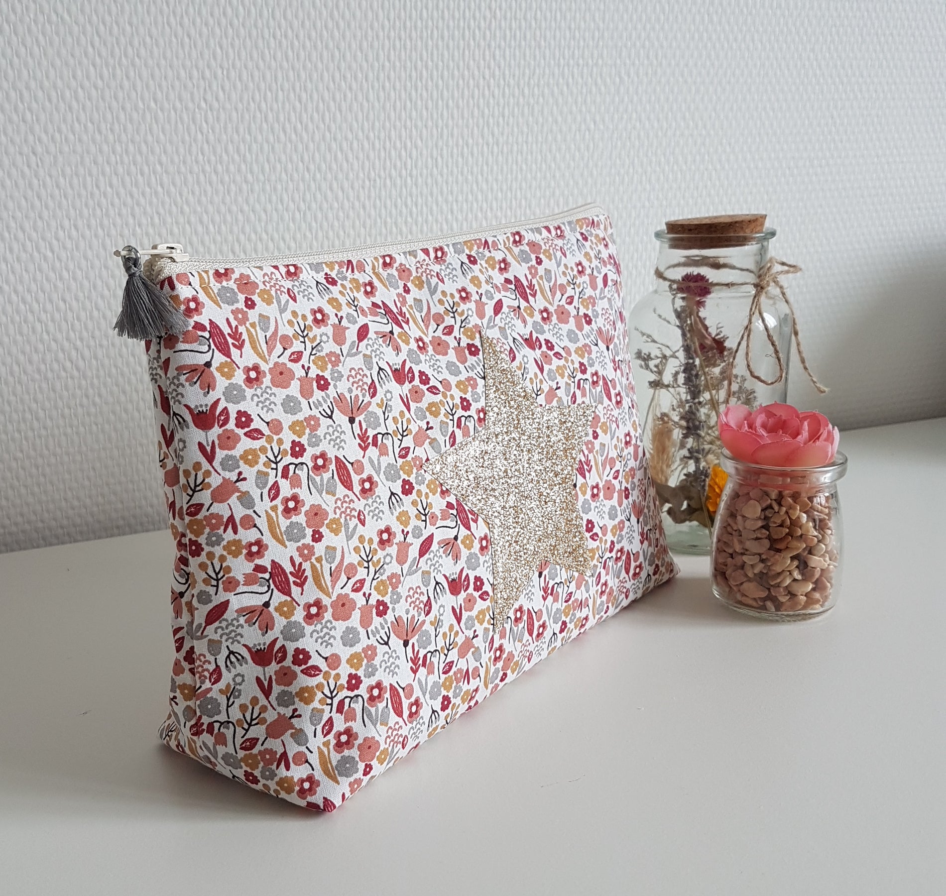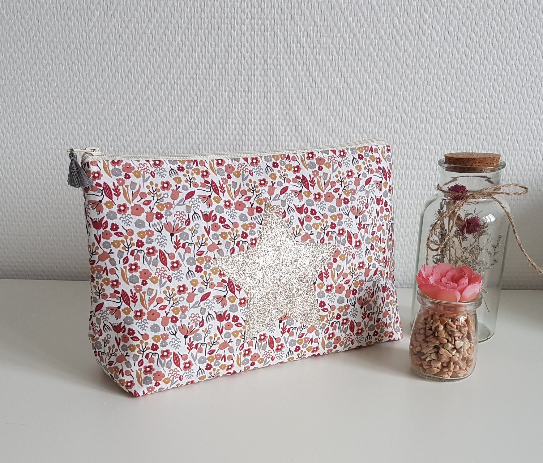 Großes Mäppchen / Federmäppchen aus bordeauxroter Liberty-Baumwolle, goldener Stern