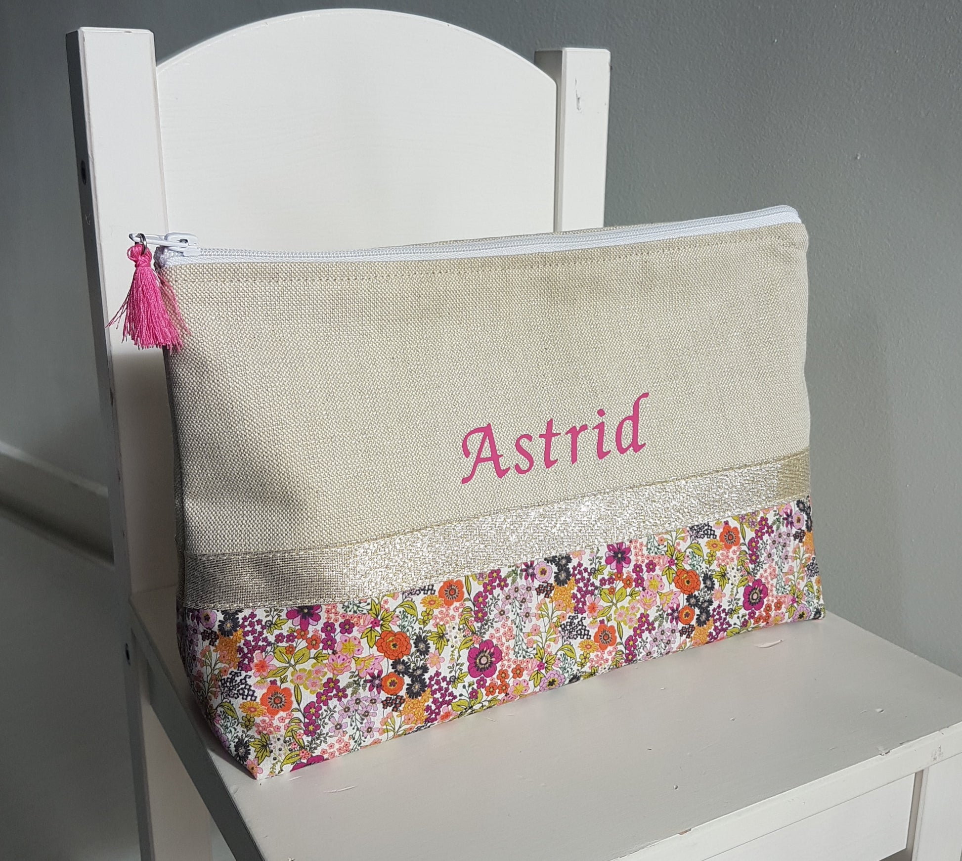 Großes, schimmerndes Etui/Beutel in Beige und Orange Liberty