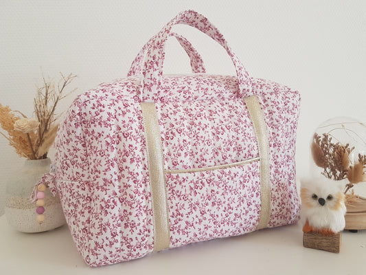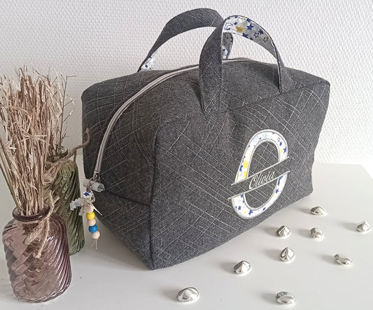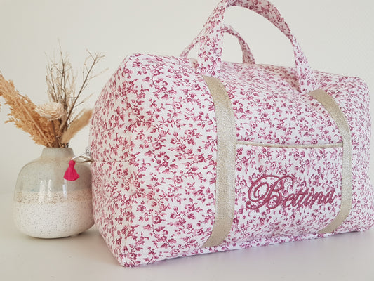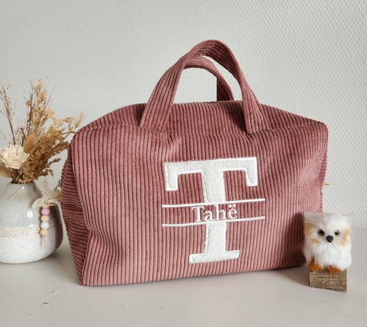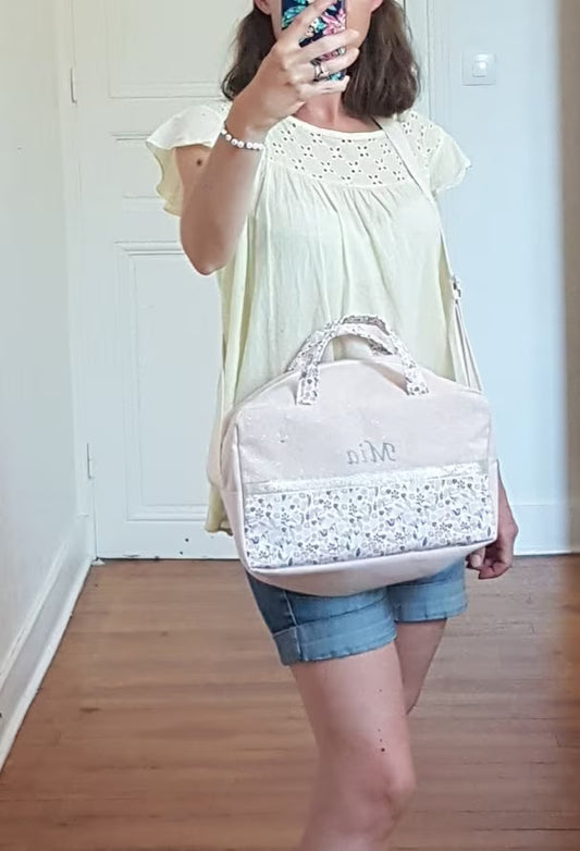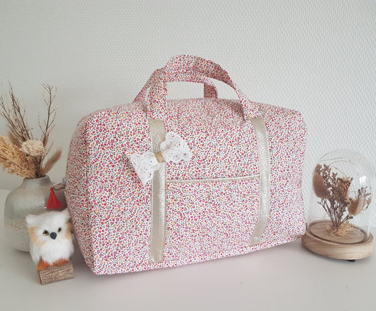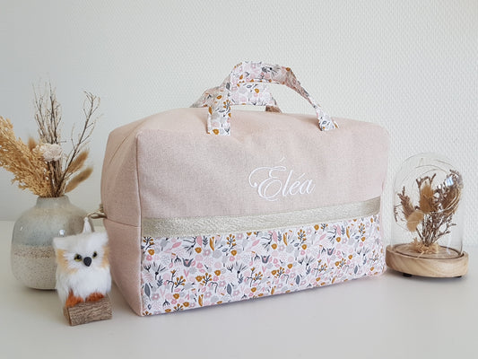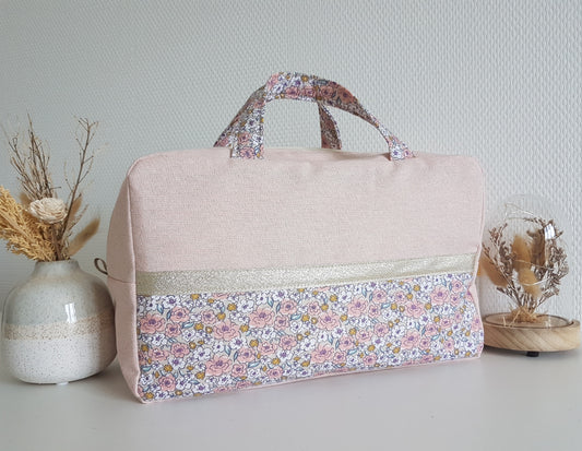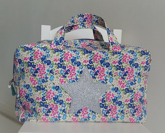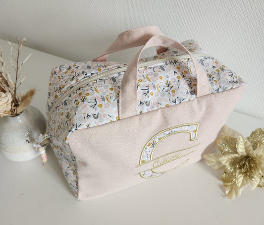 Pale pink glitter and liberty suitcase, capital letter and first name embroidery