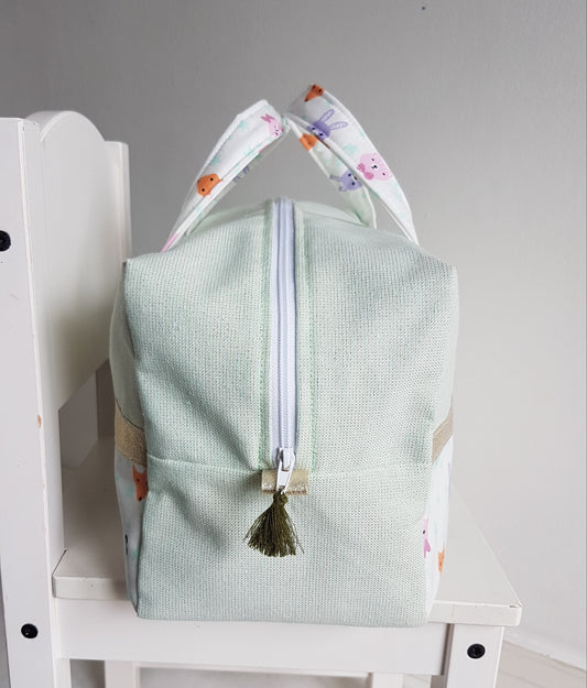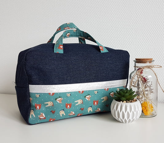 IN STOCK Two-tone suitcase in shimmering water green and small animals