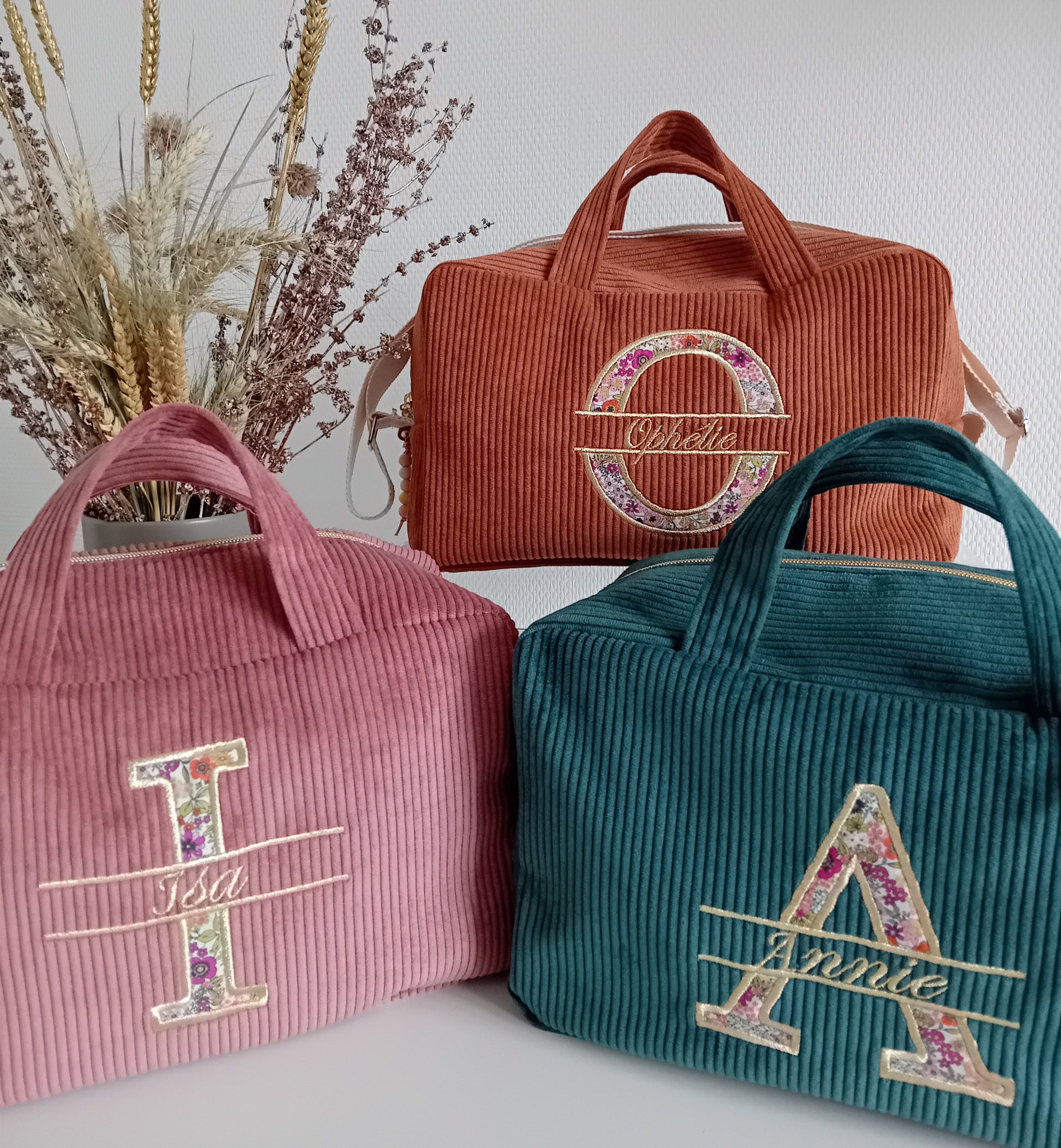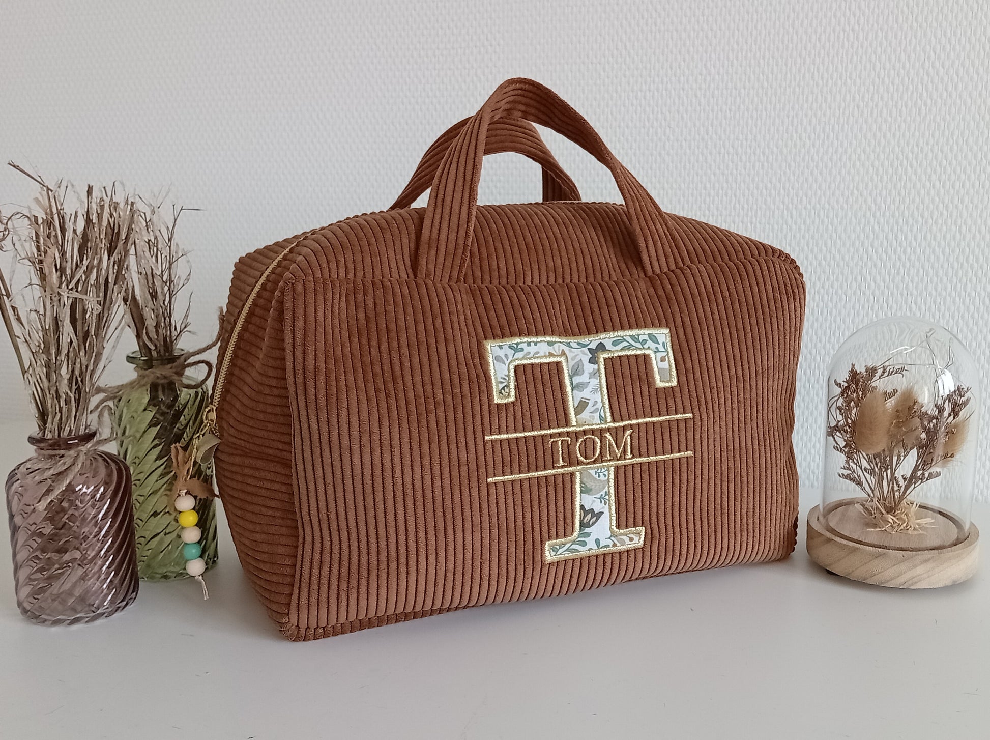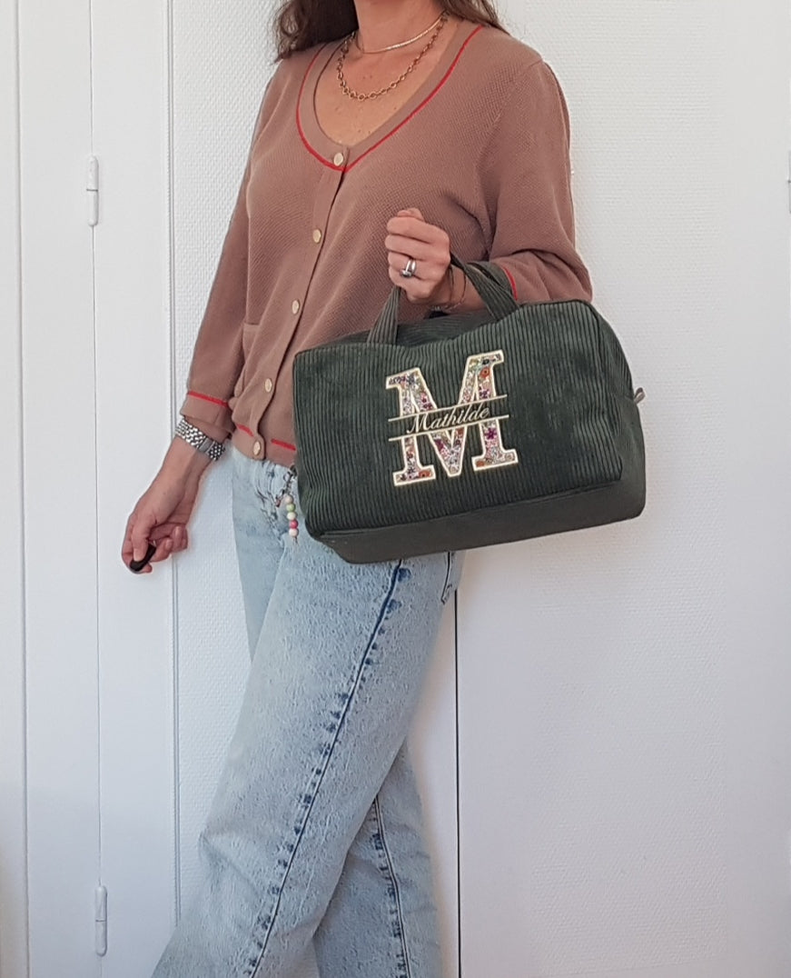 Corduroy suitcase with floral capital letter