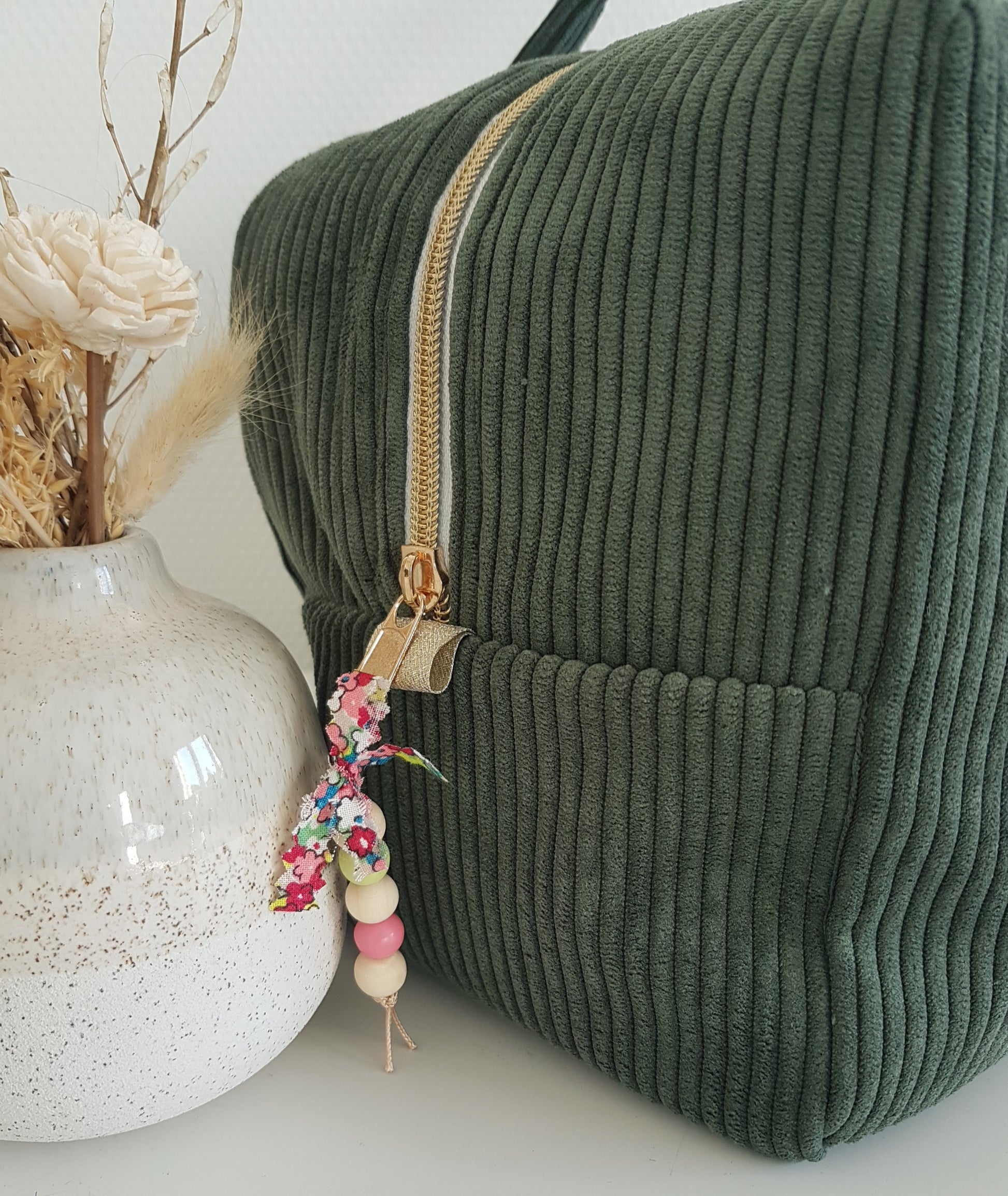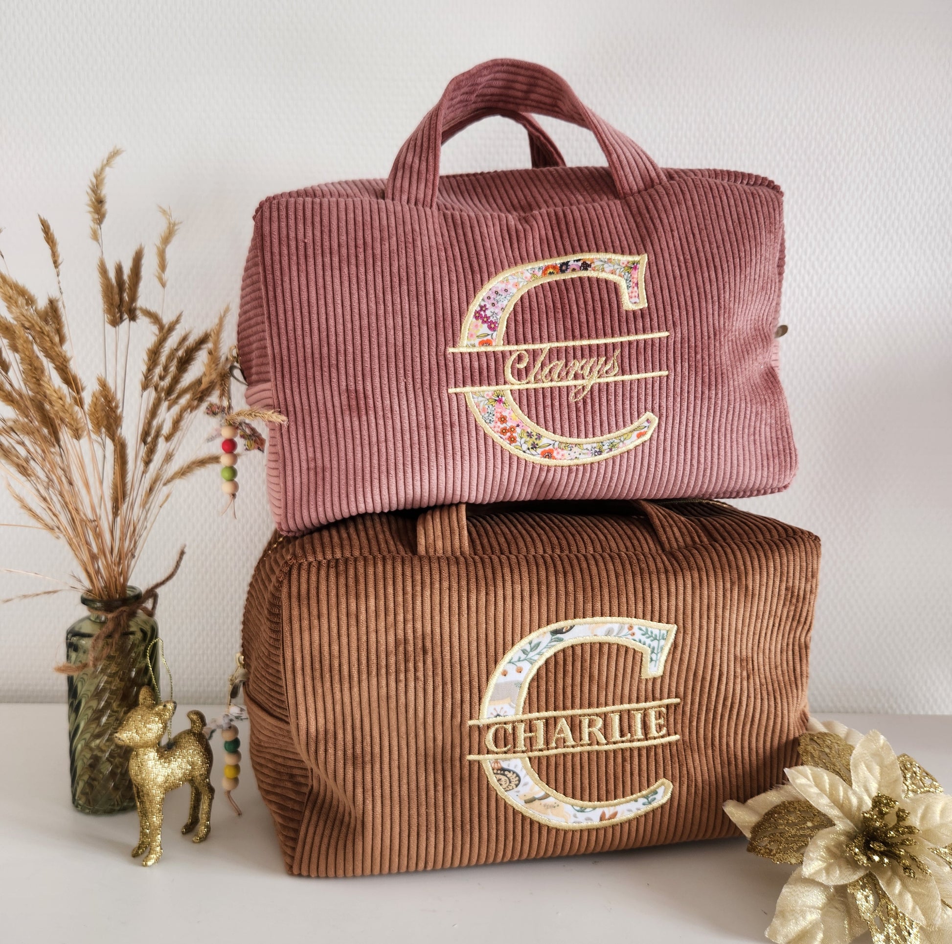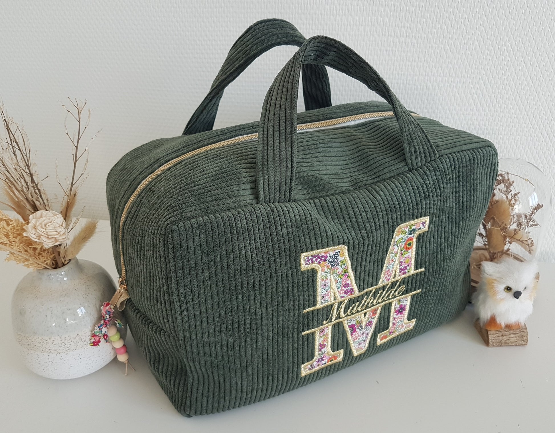 Corduroy suitcase with floral capital letter